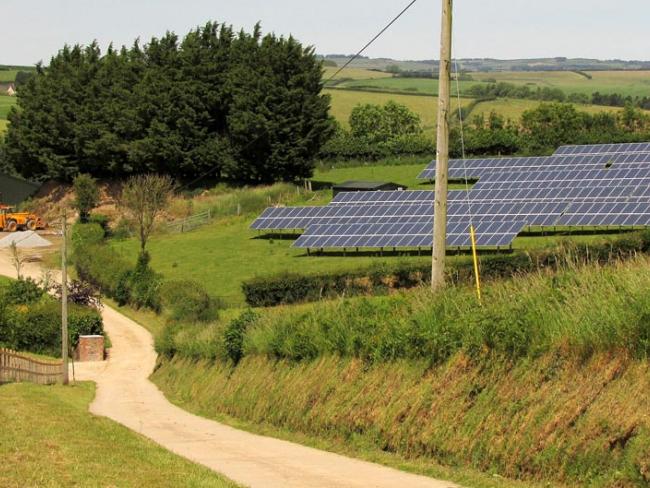 Solar panels covering farmland, Devon. Photo Derek Harper/geographically.org.uk (CC BY-SA 2.0)