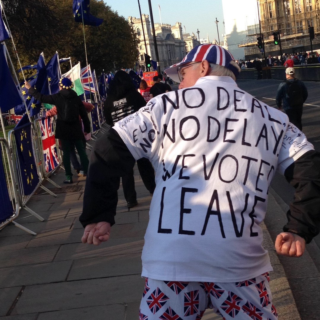 Jubilation in Parliament Square at the end of January 2020 as Britain finally leaves the EU. Photo Alexey Federenko/shutterstock.com.