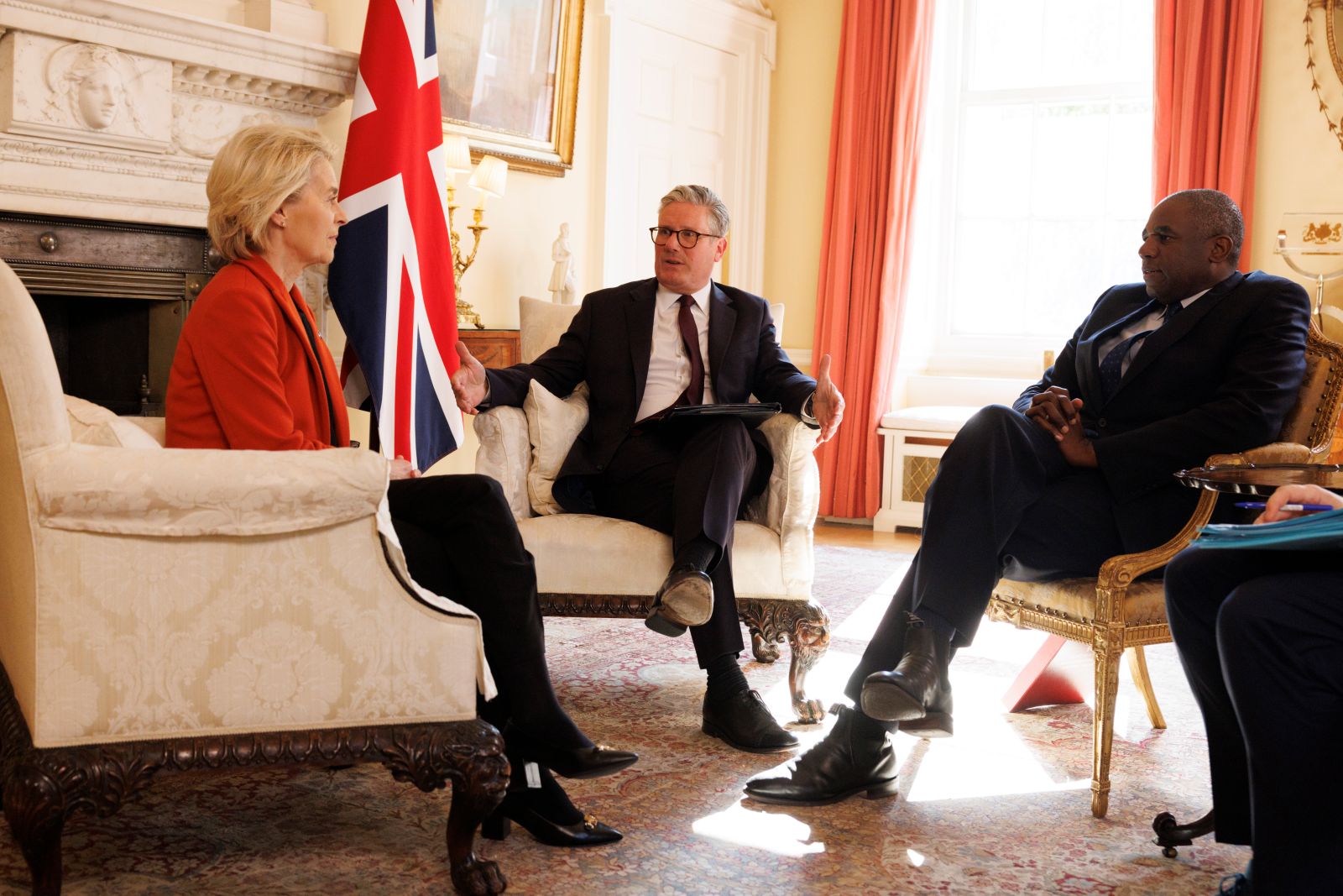Keir Starmer and then foreign secretary David Lammy meet European Commission president Ursula von der Leyen in 10 Downing Street, 24 April 2025. Photo Simon Dawson / No 10 Downing Street via Flickr (CC BY-NC-ND 2.0).