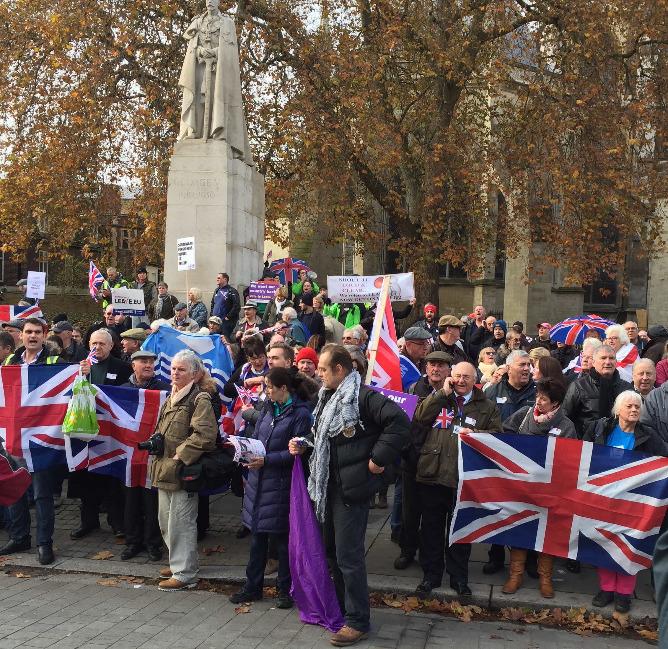 November 2016 demonstration for Brexit outside parliament. The message then was there can be no sovereign parliament unless the will of the people is sovereign. That struggle continues. Photo Workers.