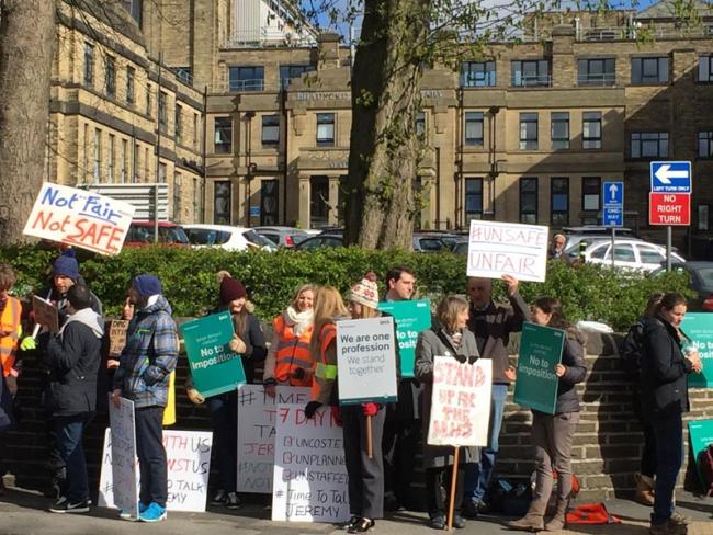 Junior doctors in dispute over contracts and patient safety, Bradford Royal Infirmary, April 2016. Photo Workers.