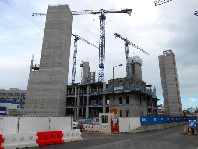 The new Royal Liverpool University Hospital under construction in 2014. It fully opened finally in 2022 after the PFI contractor went bust. Photo Rept0n1x via Flickr (CC BY-SA 2.0).