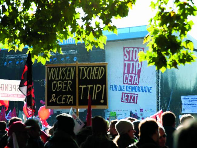 Anti-free trade agreement demonstration, Berlin, October 2015. But the negotiations continue… Photo Jan Hagelstein (CC-BY-SA 2.0)