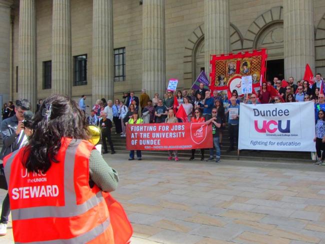 In October, three branches in Scotland backed industrial action against job losses: University of the West of Scotland, University of the Highlands and Islands, and University of Dundee. Members at University of Edinburgh took action earlier this semester. UCU members there are re-balloting to extend their strike mandate.
