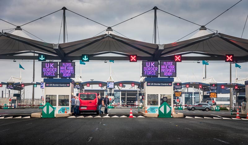 Early morning, 6 September 2016: Polish workers in their way to the UK go through the passport control at the France–UK border in Calais ferry terminal. Photo